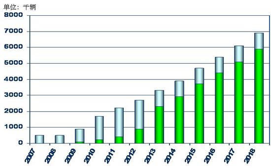 本IIT公司預測,使用液體鋰離子電池(LiB)的混合動力汽車(HEV)、充電式混合動力電動汽車(PHEV)、純電動汽車(EV)從2009年、2010開始較大量推出后,到2012年其市場規模還達不到鎳氫電池車,但從2013年開始,其規模就開始大大超越鎳氫電池車;并且,從2013年開始,鎳氫電池車的市場規模就已基本固定,幾乎沒有增長,但鋰電池車的市場規模則隨著這些新能源車市場的增長而逐漸增長,并成為市場主流。
