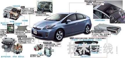 新款普銳斯中部分款式的車頂配備了太陽能電池(圖2右上)。