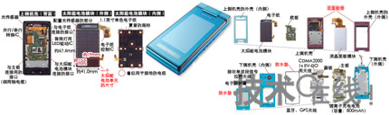 類似的例子是夏普的2009年夏季款au手機“SOLARPHONESH002”(圖3)。該機型配備有太陽能電池模塊,當電池沒電時,晴天照射陽光10分鐘左右,便可通話約1分鐘、待機約2小時。