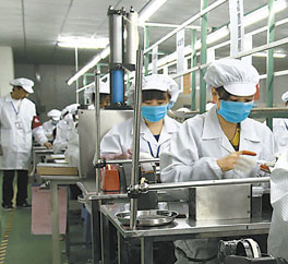 近日,江西福斯特新能源有限公司生產(chǎn)出了該市第一批鋰離子電池。圖為該公司員工正在生產(chǎn)鋰離子手機電池。