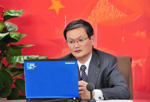 日本夏普株式會社常務(wù)董事、 中國本部本部長、夏普商貿(mào)(中國)有限公司董事長菅野信行先生暢談跨國企業(yè)在中國的故事!圖為菅野信行回答網(wǎng)友提問。