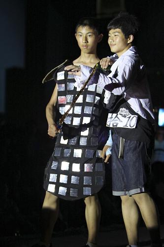 5月24日晚,浙江嘉善縣泗洲中學的學生在T臺上展示自己設計制作的“環保時裝”。