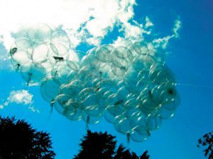 阿根廷藝術家托馬斯·薩拉切諾2005年利用透明鏡像箔、太陽能電池板、LED燈、光感應器和電池、黑繩、織帶等物品制作出一個氣球形狀的“花園飛行器”,它是另類的空中農(nóng)場,能夠漂浮在空中的城市綠地。