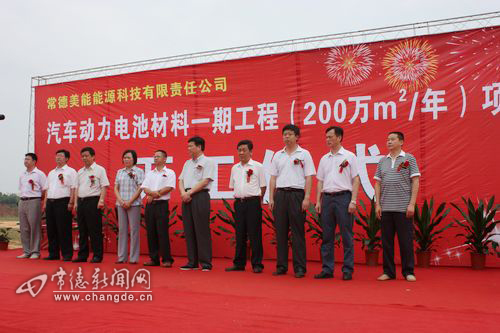 常德美能汽車動力電池材料項目是湖南科力遠高技術控股集團有限公司全資投入的新能源項目。項目于2007年簽訂開發協議,2008年奠基并開始土地平整,2009年進行項目調整,項目將建成以汽車動力電池材料為中心的研發、生產、銷售的高新技術工業產業園,其中一期工程為年生產200萬平方米汽車動力電池材料。