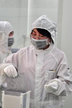1月14日,工人在西安黃河光伏股份有限公司的太陽能電池、電池組件生產(chǎn)線上工作。