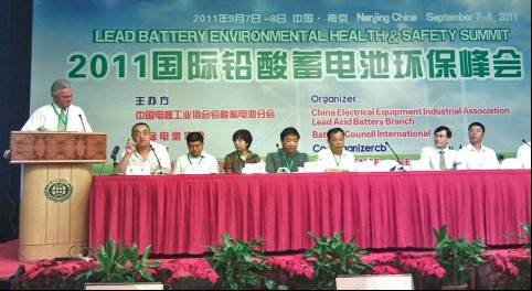 2011年9月7日,由中國電器工業協會鉛酸蓄電池分會(CEEIA)和國際蓄電池協會(BCI)共同舉辦的“BCI—CEEIA 國際鉛酸蓄電池環保高峰會議”在南京國際會議中心召開,此次高峰會議主題是“鉛酸蓄電池行業環保和職業安全健康”。會議既有來自國家環保部、衛生部和工信部的領導參加,也有來自國際上多名資深環保與職業健康專家參加,同時還有來自國內外共200多家企業參會。國際蓄電池協會( BCI)執行副總裁MARK THORSBY,美國鉛酸電池工業界資深環保專家DANIEL ASKIN,美國環保部(EPA)與疾病控制中心環保專家ROBERT SCHOLZ等專家學者分別就鉛酸蓄電池行業的環保設施、廢物排放與處理、清潔化生產及職業安全健康等專題進行演講。國家環保部、衛生部、工信部相關領導就當前行業政策的制定情況向與會成員進行解讀。
