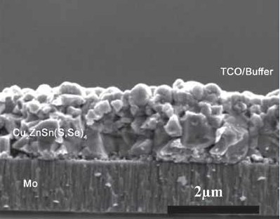 當(dāng)前的紀(jì)錄,銅鋅錫硫族太陽(yáng)能電池光電轉(zhuǎn)換效率超過(guò)10.1%,這一紀(jì)錄是由米茲(Mitzi)和IBM的同事制造的(《高效率太陽(yáng)能電池采用地球上豐富的液體處理吸收劑》),使用的前體需要用肼(hydrazine)穩(wěn)定,肼是一種具有肝毒性、易爆的致癌溶劑。