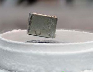 制作這種電池的材料是二氟化氙(XeF2),一種白色晶體,科學(xué)家把它裝進(jìn)小小的金剛石壓力艙里,加上超強的壓力,結(jié)果是分子間越來越近,首先變成2維半導(dǎo)體,然后,當(dāng)壓強達(dá)到百萬倍的大氣壓,分子形成3維金屬網(wǎng)狀結(jié)構(gòu),使得機械能全部儲存在分子間轉(zhuǎn)化為化學(xué)能。