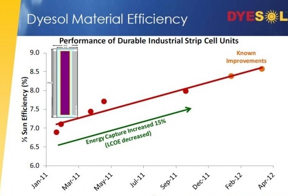 Dyesol公司在上周向德國投資者所做的報告中指出,他們計劃在2012年4月將轉換效率提高到8.5%以上。