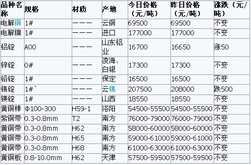上一篇: 2011年5月31日北京有色金屬市場行情