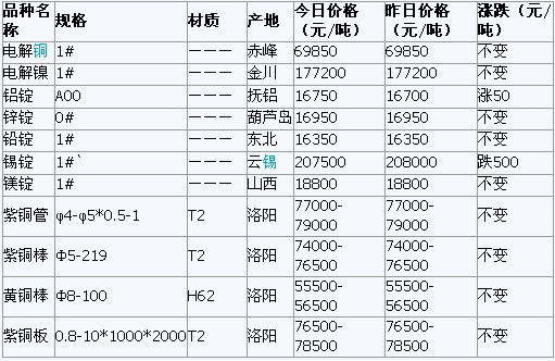 2011年5月31日沈陽有色金屬市場行情