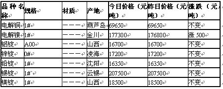 上一篇: 2011年6月1日廣東有色現貨報價(南儲)(銅鋁鉛鋅鎳鈷鎘錳鎂鉍) 下一篇:  2011年6月1日天津有色金屬市場行情