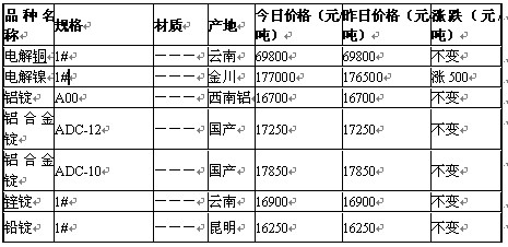 2011年6月1日重慶有色金屬市場行情