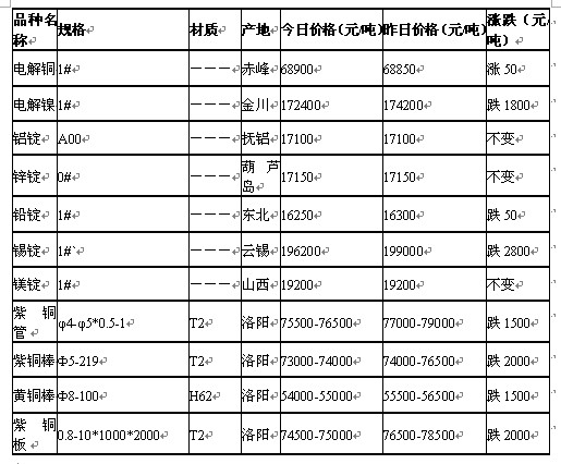- 2011年6月13日武漢有色金屬價(jià)格行情