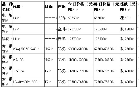 2011年6月14日武漢金屬有色市場行情
