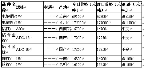 2011年6月2日重慶有色金屬市場行情
