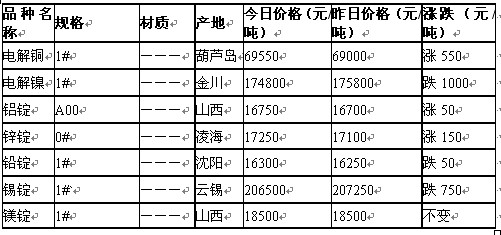 上一篇: 2011年6月3日長江有色金屬現貨上午快訊(銅鋁鉛鋅錫鎳)