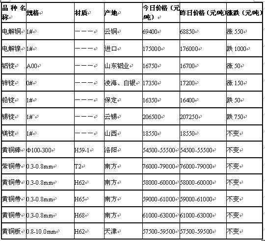 上一篇: 2011年6月3日北京有色金屬市場行情