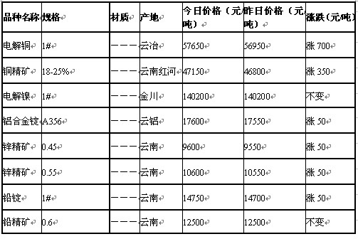2011年9月14日昆明有色金屬市場(chǎng)行情