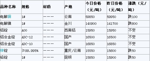 上一篇: 2012年3月1日武漢有色金屬市場行情
