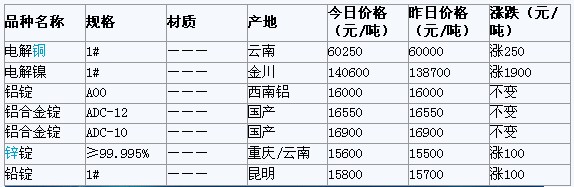 2012年3月14日重慶有色金屬市場行情