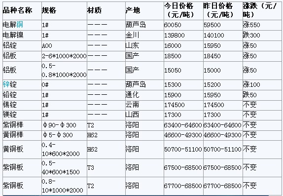 2012年3月16日濟南有色金屬市場行情