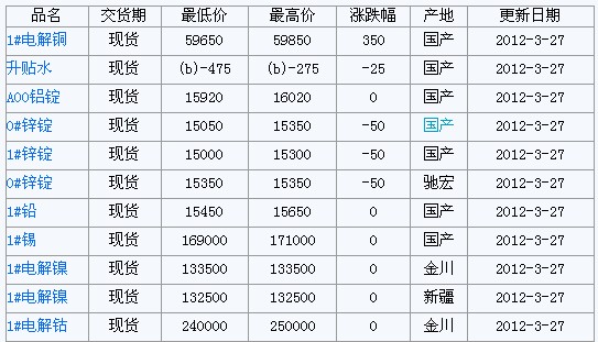 下一篇: 2012年3月27日長江有色金屬現貨價格上午快訊