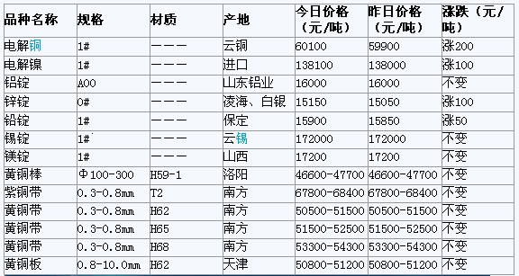 2012年3月7日天津有色金屬市場(chǎng)行情