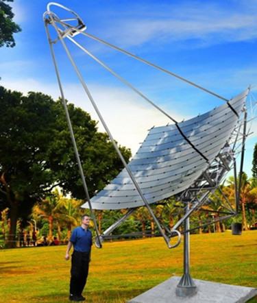 “太陽帆”的工作原理在于采用一個長寬都是12英尺的聚光鏡將太陽光聚集,從而將太陽能轉換為熱能.天氣晴朗的時候,太陽帆可以持續提供高溫水蒸氣.這些高溫水蒸氣可以有多種用途.其中包括工業處理,室溫調節,光伏發電等.
