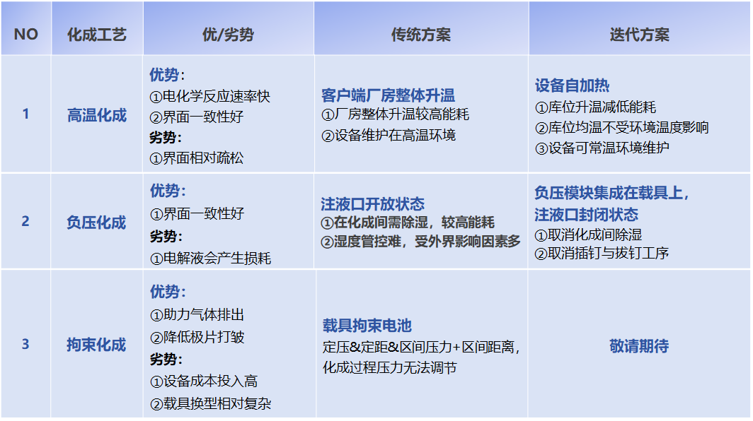 以高溫化成一體機為例,目前鋰電行業的趨勢是——達到制造端的極致節能、極致提效、極致降本,因此向設備端提出了取消廠房的高溫、干燥的環境要求。