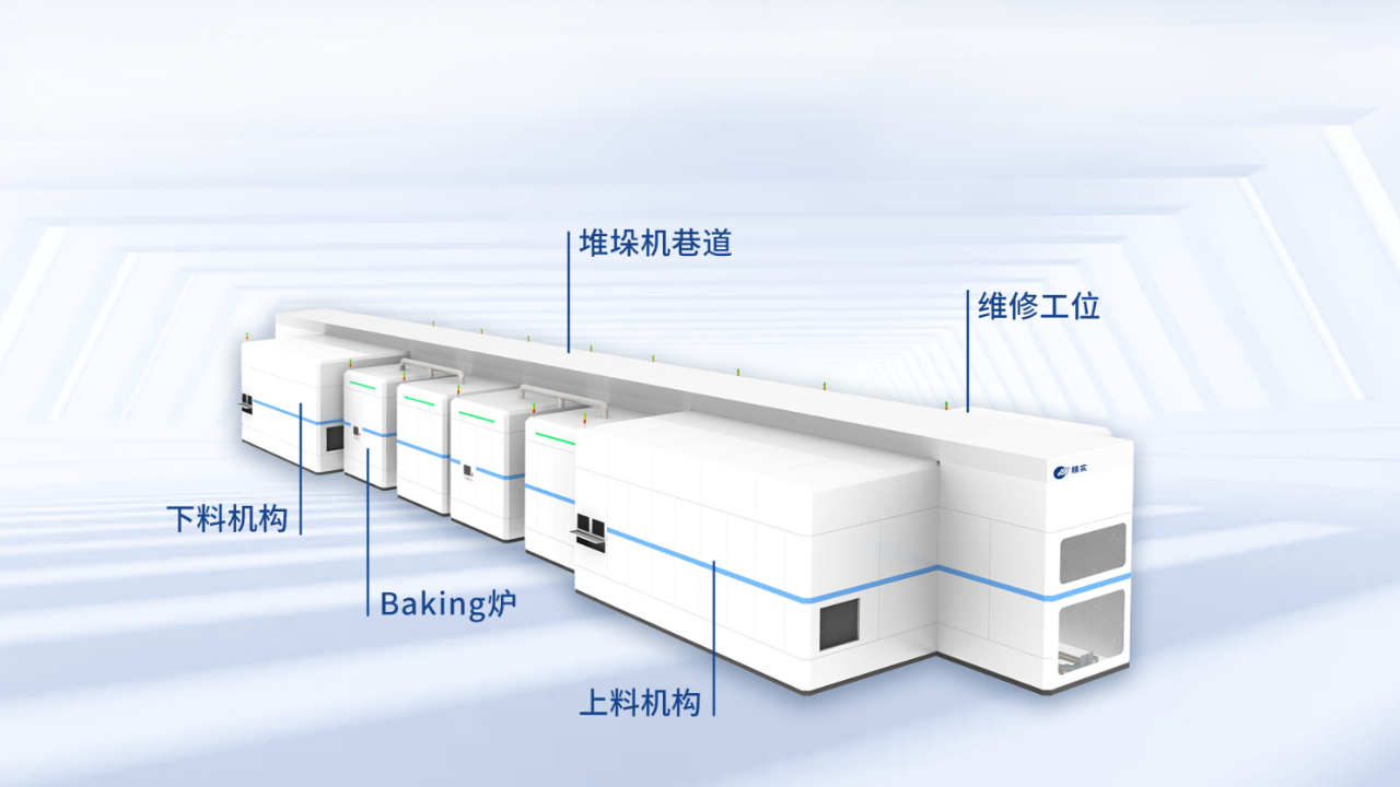 隨著超級拉線的引入,傳統生產工藝很難匹配前后段產能。在此背景下,精實重磅推出新一代高產能全自動Baking線全新解決方案,即大腔體Baking設備,搭載重載堆垛機與物流調度系統,高效助力鋰電綠色智造: